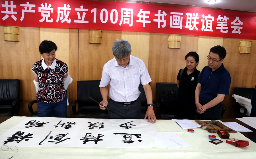 为庆祝中国共产党成立100周年,回顾党的奋斗历程,歌颂美好新时代,助力公司企业文化建设。6月24日,深圳市纬域科技有限公司、烟台市老年书画研究会、烟台市老干部志愿者协会共同举办“庆祝中国共产党成立100周年联谊书画笔会”。本次活动共有18位县处级退休老干部书画家参加。
